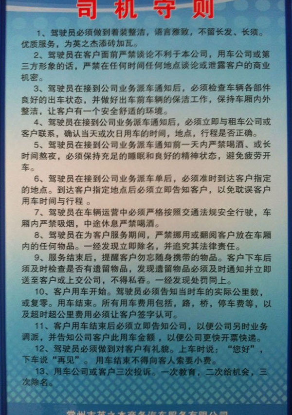 常州市英之杰商務(wù)汽車服務(wù)有限公司是一家專業(yè)從事企事業(yè)單位重要接待任務(wù)、企業(yè)高檔旅游等用車服務(wù)、以及中、小型高檔汽車的租賃業(yè)務(wù)。具有省交通廳批準(zhǔn)核發(fā)的客運(yùn)企業(yè)資質(zhì)證書。多年來,本公司從行業(yè)管理要求出發(fā),結(jié)合本公司的實(shí)際情況,堅(jiān)持“親和、誠信、專業(yè)、便捷”的服務(wù)品牌內(nèi)涵,注重團(tuán)隊(duì)建設(shè)、車輛管理、安全管理和優(yōu)質(zhì)服務(wù)等,進(jìn)一步提升本公司在我市客運(yùn)行業(yè)中的良好形象。本公司著重在服務(wù)、安全管理上下功夫,從經(jīng)營管理、服務(wù)理念上找差距:從提高適應(yīng)市場的能力上做文章。扎扎實(shí)實(shí)地抓好各項(xiàng)管理工作,做強(qiáng)而不盲目求大,做憂而不盲目求全,一切以客戶需求為需求。目前公司與常武地區(qū)的多家大型企事業(yè)單位和上市公司(如國茂減速機(jī)集團(tuán)、國泰鑄造集團(tuán)、騰龍汽車零部件股份有限公司、石墨烯研究院、海斯町發(fā)動(dòng)機(jī)零部件有限公司等企事業(yè)單位)建立了良好的租車合作關(guān)系