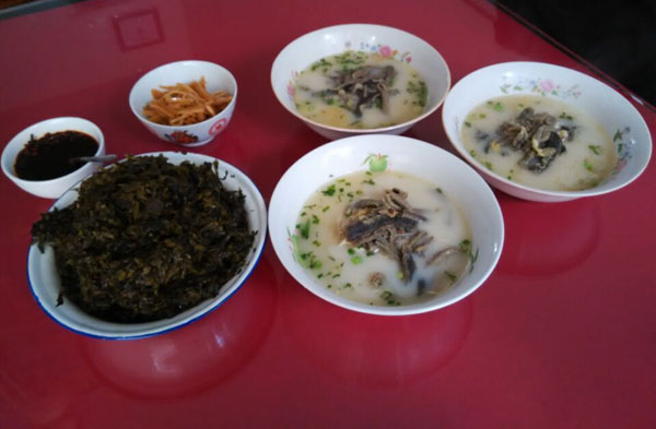 歡迎來孟河老街的八斤面館吃孟河鱔絲面! 這孟河鱔絲面據(jù)說是康熙年間傳下來的,算起來已有三百多年的歷史了,要比常州小籠饅頭、大麻糕一百多年歷史悠久得多。在孟河一帶,做孟河鱔絲面的面館有許多家,就像常州做小籠饅頭、大麻糕的店家一樣的多。 “八斤面館”的孟河鱔絲面是有傳承的,是孟河兩家比較正宗的孟河鱔絲面館之一。孟河鱔絲面制作技藝曾列入新北區(qū)非物質(zhì)文化遺產(chǎn)調(diào)查,調(diào)查時(shí)“八斤面館”的老板巢八斤也提供了有關(guān)資料。 這家小面館取名為“八斤面館”,是因?yàn)槔习逍∶徒邪私。走進(jìn)這片小小的面館,只有兩張八仙桌。只有臺(tái)子上的玻璃臺(tái)刻還有點(diǎn)七十年代的特征,其它地方還都是五、六十年代鄉(xiāng)下家里頭的風(fēng)格。 老板巢八斤祖上三輩都是廚師,現(xiàn)在兒子也在上海做廚師。老板娘原來是上海知青,上山下鄉(xiāng)時(shí)投親靠友來到孟河,后來在孟河與巢八斤結(jié)婚,成家立業(yè)。與在支青大返城時(shí)放棄回大上海的機(jī)會(huì),與老公開了這個(gè)“八斤面館”,用老板娘的話說是"做做白相相的",所以守著這片小店,只想把鱔絲面做好。也不想做大,也不想到常州到上海去開大一點(diǎn)的面館。 這孟河鱔絲面是用一斤有十幾條的“筆梗黃鱔”,先用開水把黃鱔燙熟,然后用竹刀批下二條黃鱔肉,除去骨頭肚腸,切成段后入油鍋里炸酥,再用白湯烹制成為面澆頭。而面湯是用鱔魚骨頭、豬骨等用大鍋猛火煮上三、四個(gè)鐘頭,成為一鍋濃濃的白湯,再進(jìn)行調(diào)味。面條也是用細(xì)細(xì)的銀絲面,大碗寬湯,鮮香味濃,沒有一丁點(diǎn)鱔魚的土腥氣,再加上白胡椒粉,吃到嘴里全身舒坦。