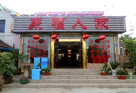 口福 一手的新鮮食材 聚福人家的老板張玉良是土生土長(zhǎng)的太滆人,從小就跟隨父母的漁船在太湖上搖曳長(zhǎng)大。憑著對(duì)太湖水產(chǎn)的熟識(shí)與一番鄉(xiāng)戀,他畢業(yè)后留在了這里,進(jìn)入了常州水產(chǎn)公司太滆銀魚分公司,繼續(xù)與這里的魚魚蝦蝦打交道。多年的矜矜業(yè)業(yè),他漸漸對(duì)太滆的漁業(yè)熟門熟路,于是便離開水產(chǎn)公司,自己開始做起了水產(chǎn)生意,10艘大漁船一年四季為其供應(yīng)最新鮮的魚蝦,有一手的新鮮貨源做后盾,他萌生開飯店的想法。 2008年,聚福人家的前身聚福樓飯店開張了。8年來,張玉良始終堅(jiān)持親自為飯店挑選新鮮的食材,顧客吃得開心、吃得健康,他就放心了。 聚福人家的菜品不僅食材新鮮,而且豐富多樣,味道一流。讓家鄉(xiāng)的味道走出去,讓外面的味道走進(jìn)來