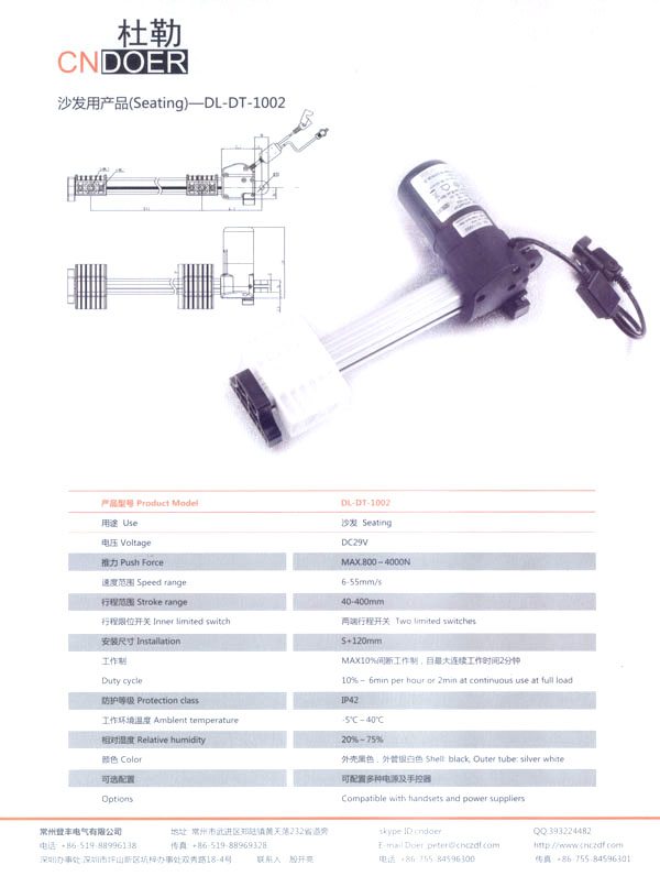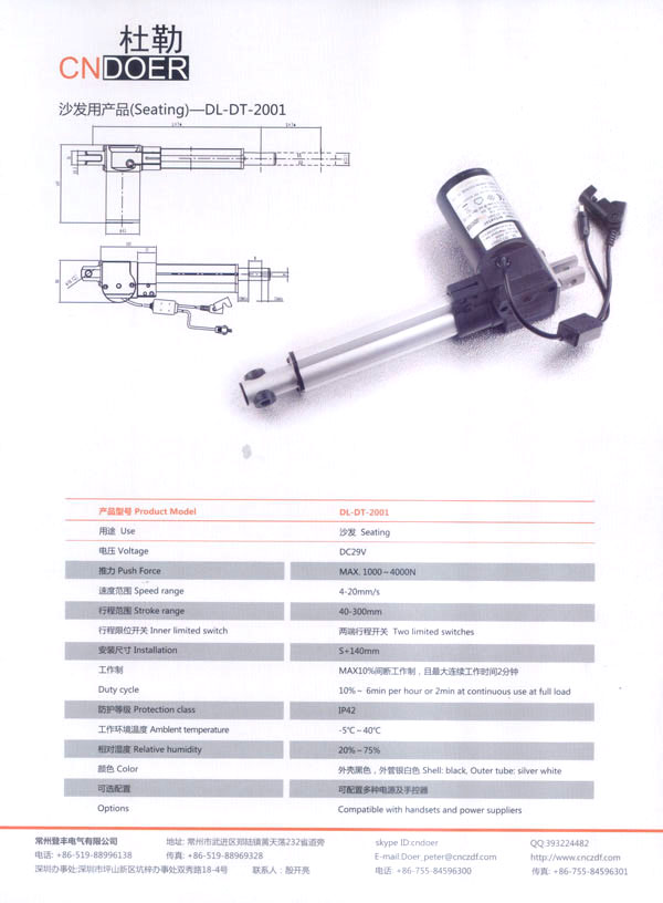 常州登豐電氣有限公司位于人杰地靈的江南古城—常州武進(jìn)區(qū)鄭陸鎮(zhèn)東青。緊臨常州火車站、滬寧高速公路、312國(guó)道、長(zhǎng)江港等,交通十分便捷。 公司最早創(chuàng)辦于1989年,歷經(jīng)20多年的艱苦創(chuàng)業(yè),本著“誠(chéng)信為本、品質(zhì)至上”的經(jīng)營(yíng)理念,公司生產(chǎn)的“武微”牌空調(diào)電機(jī)、“蘇杰”牌電動(dòng)車電機(jī)和采用國(guó)外先進(jìn)技術(shù)制作的動(dòng)力強(qiáng)勁、同時(shí)具有過(guò)載保護(hù)和消音裝置的綠色環(huán)保產(chǎn)品:“登豐”、“聚美”牌食物垃圾處理器。這些產(chǎn)品在全國(guó)各地市場(chǎng)均享有較高的知名度。 如今,公司為謀求新的發(fā)展,立足于國(guó)內(nèi),放眼于國(guó)際市場(chǎng),投入了大量的人力、財(cái)力、物力,購(gòu)置了先進(jìn)的全自動(dòng)生產(chǎn)流水線、全自動(dòng)繞線機(jī)和各類精密的測(cè)試儀器,多功能隔音房等設(shè)施,全新推出了具有美好前景和廣闊市場(chǎng)的主打產(chǎn)品:“杜勒”牌系列線性推桿及各類配套電機(jī)。該產(chǎn)品已通過(guò)ISO9001認(rèn)證,產(chǎn)品外觀新穎、制作精良、噪音小、操作靈活簡(jiǎn)便,暢銷國(guó)內(nèi),遠(yuǎn)銷國(guó)外,被廣泛應(yīng)用于電動(dòng)沙發(fā)、醫(yī)療護(hù)理床、手術(shù)床、按摩椅等眾多領(lǐng)域!岸爬铡碑a(chǎn)品已被越來(lái)越多的客戶所青睞和認(rèn)可! 公司竭誠(chéng)歡迎各界朋友、新老客戶前來(lái)洽談合作,共謀發(fā)展。我們也將不斷開拓創(chuàng)新,提高產(chǎn)品質(zhì)量,完善售后服務(wù)體系,努力打造成為行業(yè)先鋒企業(yè)!