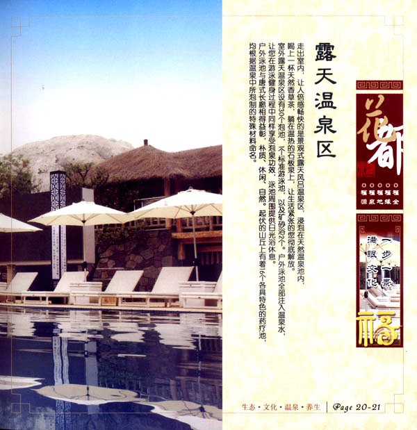 花都溫泉水城包括洗浴區(qū)、戲水世界、露天溫泉、自助餐廳、生態(tài)房、別墅區(qū)、紅文化房、VIP區(qū)等多種功能區(qū)域,是集溫泉養(yǎng)生、休閑住宿、演藝會務為—體的休閑度假勝地,給賓客帶來江南小鎮(zhèn)的浪漫水城之旅。
