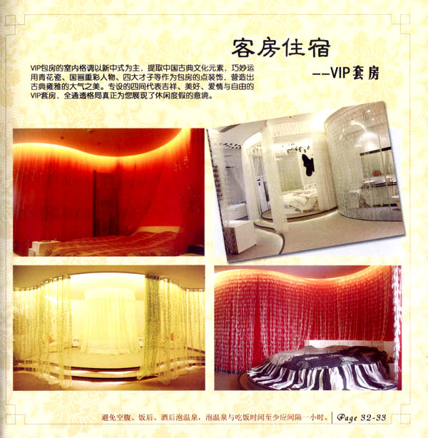 淹城花都溫泉水城孕育天地之精華,悅身、悅?cè)荨傂、悅神。置身其中泉水潺潺,霧氣繚繞、花瓣飄香,恍若仙境!稗渌略谑,弄花香滿衣”,花都溫泉的浪漫與溫潤在這里完美展現(xiàn)。 花都溫泉水城包括洗浴區(qū)、戲水世界、露天溫泉、自助餐廳、生態(tài)房、別墅區(qū)、紅文化房、VIP區(qū)等多種功能區(qū)域,是集溫泉養(yǎng)生、休閑住宿、演藝會(huì)務(wù)為—體的休閑度假勝地,給賓客帶來江南小鎮(zhèn)的浪漫水城之旅。 古木新枝畔賓客對酒當(dāng)歌,溪泉石椅旁把茶品啜。 淹城-三勤生態(tài)酒店,這里是一處綠色生態(tài)的美食家園。此地鬼斧神工.奇水異石,和風(fēng)細(xì)雨林中穿過,引百鳥朝來暮歌;這里集生態(tài)餐飲、演藝、中小型會(huì)務(wù)為一體,將現(xiàn)代裝飾風(fēng)格和古雅拙樸的自然裝修完美整合;這里聚集大江南北名廚,推出精致綠色美昧佳肴。來到這里,賓客可享田園至美之景,品舌尖至鮮之味,實(shí)乃人生一大樂事。