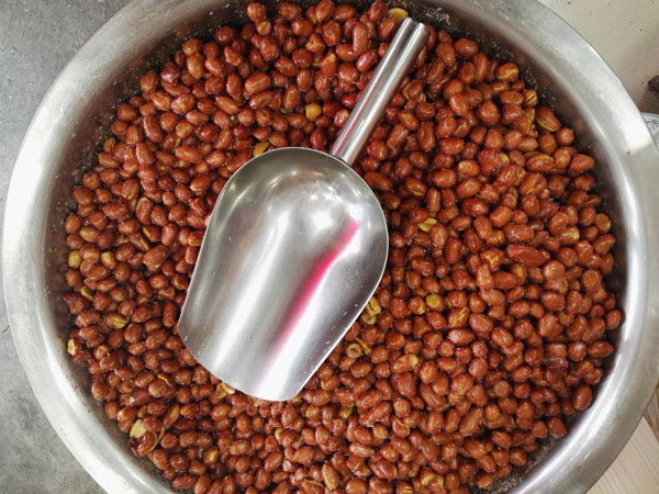 湖塘花東街上的“石頭炒貨店”是20多年的老字號(hào)了。上個(gè)世紀(jì)90年代,二十郎當(dāng)歲的“石頭”一一石愛軍從徐州來(lái)到武進(jìn),就在這條街上擺了個(gè)炒貨攤。“幾平方米的小地?cái),邊上架個(gè)大鐵鍋,炒出的瓜子、花生、蠶豆,鋪在竹篾上篩過(guò)、冷卻后就可以賣了!笔瘣圮娀貞洠址秽徖锩爸盏膰(yán)寒,擠在地?cái)偳皣L著剛出鍋的瓜子的場(chǎng)景,還歷歷在目。20多年過(guò)去了,鄰居們都成了最熟悉的親人,從年輕姑娘到抱著孫子的老人,大家還是最愛吃石頭炒的瓜子。而炒貨店的店面也擴(kuò)大了,并且在湖塘另開了多家分店。        生意最好的還是花東街上的老店。不大的店面,被一袋袋瓜子、花生、蠶豆、核桃堆得滿滿的,空氣里也滿滿都是堅(jiān)果的香氣。超大瓜子唇齒留香,去皮瓜子鮮香入昧,南瓜子皮薄肉厚,還有開心果、手剝松子、小油果、核桃、碧根果、小黃豆,以及炒米糕、蛋卷、麻松條、紫薯干、地瓜干、山芋片、鍋巴、芝麻糖、山楂、麻花、葡萄干….這么多美昧都是老板親手制作。愛吃點(diǎn)什么,就用一 長(zhǎng)柄勺鏟點(diǎn)兒什么,最質(zhì)樸簡(jiǎn)單的包裝袋里,裝著的是屬于這條老街居民記憶里的味道,穿過(guò)幾十年的時(shí)光,仍然鮮活生動(dòng)地銘刻在每一個(gè)人的里。      “少東家”石榮沖就是在這個(gè)老店、這條老街長(zhǎng)大的。他說(shuō)目前自己炒瓜子的技藝還沒到火候,還在跟著父親學(xué)習(xí)的階段!碧暨x原料、炒制工序,每一步都有學(xué)問(wèn)在里頭!蹦玫陜(nèi)的銷售冠軍“內(nèi)蒙大瓜子”來(lái)說(shuō),這種來(lái)自內(nèi)蒙、經(jīng)過(guò)充足日照的葵花子每顆長(zhǎng)度近2厘米,個(gè)頭特別大,也十分飽滿。拈一顆大瓜子,就連嗑起來(lái)的聲音也分外清脆。外皮很容易與內(nèi)仁剝離,碩大的瓜子仁口感十分香脆,與別家作料用得很足、吃起來(lái)特別鮮咸的瓜子不同,這種大瓜子更注重烘托原昧,淡淡的咸昧在舌尖掠過(guò),剩余的都是屬于瓜子的天然香甜。
