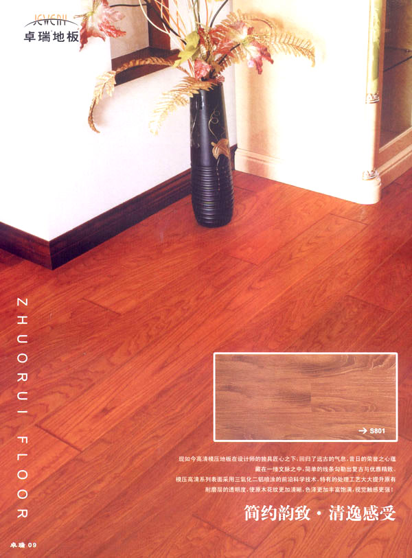 常州市卓瑞裝飾材料有限公司創(chuàng)建于一九九二年,公司位于中國江蘇省常州市,北靠滬寧高速公路,南臨滬寧鐵路,東臨無錫,環(huán)境優(yōu)越。 公司占地35畝,生產廠房2萬多平方米,擁有多條先進的復合地板生產線。公司引進先進設備和技術研制而成的高耐磨環(huán)保復合地板。一流的生產設備,加上嚴格的操作流程,精細的加工工藝,嫻熟專業(yè)的技術,是泰格龍地板脫穎而出,泰格龍以大眾健康為己任,務求每一塊泰格龍地板都是健康產品,都是科技、自然、藝術、生活的精彩結合。 產品通過ISO9001國際質量體系認證和ISO14001國際環(huán)境質量體系認證。目前產品主要出口美國、英國、德國、澳大利亞、馬來西亞、烏克蘭、菲律賓、加拿大、智利、土耳其等十多個國家和地區(qū)。 未來,本公司上下將一如既往,堅持“質量第一,顧客之上”的原則,以高質量的產品,優(yōu)良的服務,歡迎各界朋友蒞臨指導,共同開拓美好前景!