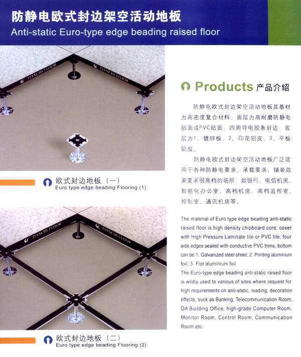 常州天馳活動地板有限公司始創(chuàng)于2010年,原身是常州市武進(jìn)區(qū)橫林天馳機(jī)房地板廠,地處橫林工業(yè)園區(qū),交通便捷。       公司主要生產(chǎn)和銷售各種機(jī)房地板,自創(chuàng)立以來,以品質(zhì)第一,信譽第一,服務(wù)第一的理念堅持做全國最優(yōu)質(zhì)量。       防靜電高架活動地板是計算機(jī)行業(yè)發(fā)展起來的新型鋪地材料,隔離了潮氣,靜電灰塵。最重要的是解決了綜合布線問題,無需預(yù)埋管線,可隨時拆卸,搬移,保證了資訊設(shè)備完整的優(yōu)點,適應(yīng)了智能化樓宇中信息自動化技術(shù)對所處環(huán)境的特定要求,避免了廣大客戶的雙重投資,使現(xiàn)代化辦公程度更加高效,辦公場所更加舒適。       公司專業(yè)生產(chǎn)“天馳”系列活動地板,符合國家安全要求,種類完備多樣,其中防靜電瓷質(zhì)高架通路地板除具有普通瓷質(zhì)的裝飾和實用性外,其耐磨,防水,防火功能優(yōu)于其他同類產(chǎn)品,深受客戶歡迎。       公司大力發(fā)展國內(nèi)外銷售業(yè)務(wù),多次中標(biāo)國內(nèi)重點裝飾工程,例:湖南電視臺,寧波縣變電站,鞍山市120急救指揮中心等。       公司將一如既往開發(fā)和制造一流的產(chǎn)品,愿與廣大有識之士合作發(fā)展,共創(chuàng)美好未來!