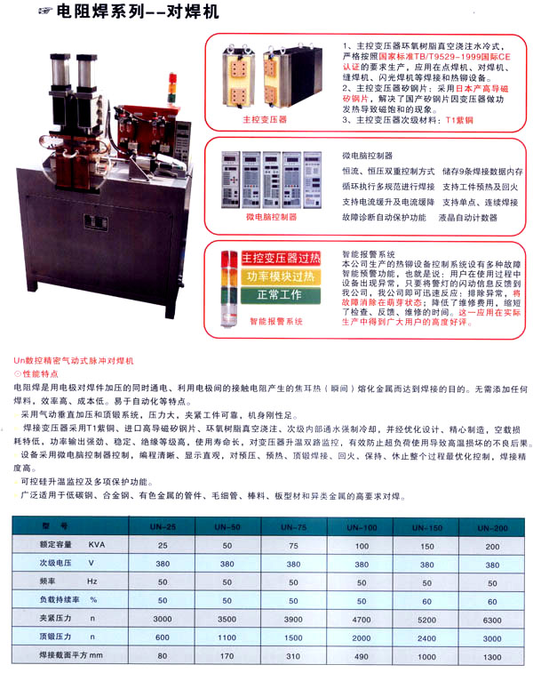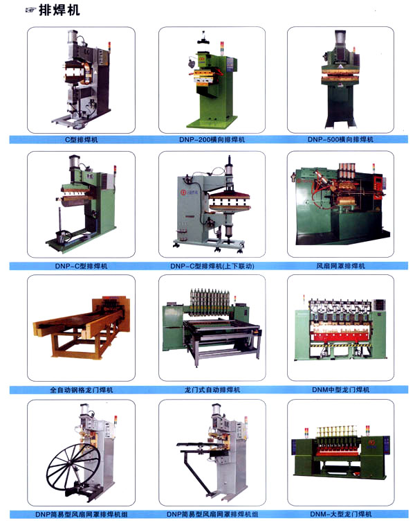 焊割主要產(chǎn)品有:點(diǎn)焊機(jī)系列、縫焊機(jī)系列、環(huán)縫焊接機(jī)床、凸焊機(jī)、排焊機(jī)、儲能焊機(jī)、對焊機(jī)、龍門焊機(jī)、太陽能焊接設(shè)備和機(jī)器人焊接系統(tǒng)及外圍設(shè)備等;并為用戶設(shè)計(jì)制造專用焊接設(shè)備。