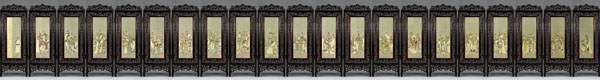 4 牙刻《三國演義圖》,作者懷著對牙刻藝術(shù)的鐘愛,對中華古老文化之敬仰,肩負時代之重托,賦予作者堅韌不撥的決心和毅力。牙刻《三國演義》創(chuàng)作靈感被點燃,博大、深遂、精致而具有鮮明文化特質(zhì)的牙刻作品自然天成,得以成就夢寐以求的作品。由微雕63萬余漢字《三國演義》全文作為灰色背景,105枚金石名章烘托出《三國演義》名著中各領(lǐng)風騷、形象鮮明的126個主要人物。由21扇牙刻紫檀組合成3.28米長的巨型屏風,寓意著對美好21世紀的憧憬。小牙刻大題材、大系列、大氣魄、大氣象,最終產(chǎn)生巨大的震撼力。牙刻《三國演義》如此恢弘絕無僅有、前無古人。從表象看牙刻與微雕的融合、書法金石與人物的呼應、灰色背景與墨彩的烘托,精雕紫檀與微雕牙刻的對照,而深層次看這些都是繪畫語言在牙刻藝術(shù)中的完美體現(xiàn),也突破了千余年來固守線刻傳統(tǒng)的窠臼,提升了當今牙刻藝術(shù)的品位并注入新的活力,將牙刻從藝人勞動升華為藝術(shù)家從事的創(chuàng)作。這件作品是我歷時五年于2001年10月雕刻而成,一經(jīng)展出引起了工藝美術(shù)界高度關(guān)注,獲得了首屆中國華東工藝美術(shù)精品展金獎、第三屆國家級工藝美術(shù)大師精品展金獎、首屆中國工藝美術(shù)學會最高學術(shù)獎“華藝杯”金獎。