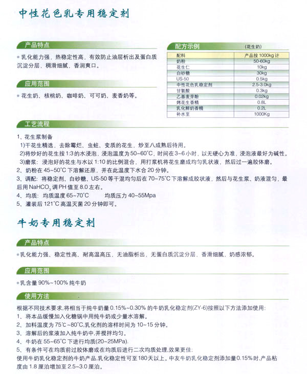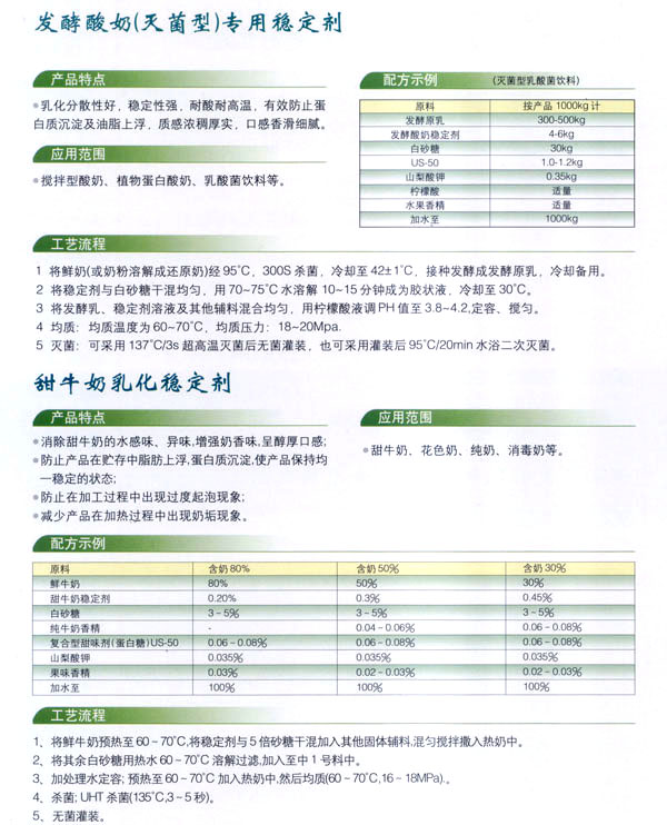常州市中友食品有限公司;匚挥诔V菔袞|郊開發(fā)區(qū),廠房占地面積6000平方米,擁有全新的生產(chǎn)線,先進(jìn)的生產(chǎn)流程和嚴(yán)格的質(zhì)量管理體系(工廠已通過(guò)IS09001:2000質(zhì)量管理體系的認(rèn)證)。并有專業(yè)的技術(shù)開發(fā)和理化檢驗(yàn)的設(shè)施、經(jīng)驗(yàn)豐富的技術(shù)人員。公司以科技為依托,常年與高等院校合作,不斷地開發(fā)和研制適合市場(chǎng)需求的食品添加劑系列產(chǎn)品。公司每年面向全國(guó)招收優(yōu)秀的博士、碩士及優(yōu)秀的大學(xué)生。公司現(xiàn)有員工1 00多人,管理人員2 0名、高工5名、產(chǎn)品專業(yè)技術(shù)開發(fā)人員12名,還有選擇地引進(jìn)和代理國(guó)內(nèi)外各種適用的食品添加劑。        依靠本公司雄厚的科技力量和先進(jìn)的科技設(shè)備,生產(chǎn)基地已經(jīng)具備了與客戶共同開發(fā)國(guó)內(nèi)外先進(jìn)食品添加劑的應(yīng)用技術(shù)。博適中友公司多年來(lái)致力于食品添加劑的研究和開發(fā),突破常規(guī)理念,以市場(chǎng)、用戶為中心,研究開發(fā)各個(gè)品種、各個(gè)檔次的食品添加劑,品種齊全又多樣,既有出口型又有內(nèi)銷型。公司主要穩(wěn)定劑產(chǎn)品有:乳飲料乳化穩(wěn)定劑、乳酸飲料乳化穩(wěn)定劑、冰淇淋(雪糕)復(fù)合乳化穩(wěn)定劑、果汁飲料乳化穩(wěn)定劑等,產(chǎn)品暢銷國(guó)內(nèi)外,覆蓋了全國(guó)二十多個(gè)省市,并建立了穩(wěn)定的銷售網(wǎng)絡(luò)。        本公司對(duì)產(chǎn)品指定了嚴(yán)格的質(zhì)量標(biāo)準(zhǔn),并報(bào)請(qǐng)常州市技術(shù)檢驗(yàn)監(jiān)督局審核批準(zhǔn),其技術(shù)要求完全符合GB一2760(食品添加劑使用衛(wèi)生標(biāo)準(zhǔn))和符合聯(lián)合國(guó)直接衛(wèi)生組織(WHO)、聯(lián)合國(guó)食品與農(nóng)業(yè)組織(FAO)以及美國(guó)食品和藥物管理局的有關(guān)規(guī)定。        長(zhǎng)期以來(lái),博適中友公司以市場(chǎng)定位為基本依據(jù),堅(jiān)持發(fā)展并開辟多元化的國(guó)內(nèi)外市場(chǎng):以專業(yè)化、長(zhǎng)遠(yuǎn)化、規(guī);癁榻(jīng)營(yíng)思路:以開拓創(chuàng)新,務(wù)實(shí)誠(chéng)信為經(jīng)營(yíng)理念,不斷促進(jìn)企業(yè)發(fā)展壯大。        公司自創(chuàng)建以來(lái),始終不渝地堅(jiān)持質(zhì)量第一、信譽(yù)至上,以精湛的工藝加工產(chǎn)品,不管是標(biāo)準(zhǔn)的或特制的都可享有本公司優(yōu)良的技術(shù)服務(wù)。無(wú)論您需要何種功能性添加劑,博適中友食品添加劑公司均能滿足您的要求。博適中友公司以價(jià)格合理、服務(wù)周到為經(jīng)營(yíng)宗旨,努力引導(dǎo)食品添加劑應(yīng)用發(fā)展的新潮流、新方向。在才能卓越的領(lǐng)導(dǎo)者的帶領(lǐng)下,全體員工以開拓、創(chuàng)新、求實(shí)、守信為企業(yè)精神,不斷地提高自身的素質(zhì)。        公司的宗旨是“開拓創(chuàng)新發(fā)展、精誠(chéng)服務(wù)和諧”為目標(biāo),熱忱與各界有識(shí)之士攜手共進(jìn),共創(chuàng)輝煌!如今公司業(yè)務(wù)蒸蒸日上,專業(yè)技術(shù)研究越走越精,這都與廣大客戶大力支持分不開。在新世紀(jì)來(lái)臨之際,上海博適中友公司愿與您真誠(chéng)合作,攜手并進(jìn),共鑄新的輝煌!