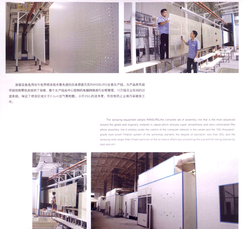 公司在成立之初即以一批具備多年經(jīng)驗(yàn)的技術(shù)骨干為中心,以雄厚的設(shè)計(jì)班底,技術(shù)過(guò)硬的操作團(tuán)隊(duì),富有管理經(jīng)驗(yàn)的專業(yè)人才為客戶提供一流品質(zhì)的產(chǎn)品和完善的服務(wù),F(xiàn)已具備年產(chǎn)50萬(wàn)平方米氟碳鋁單板、20萬(wàn)平方米蜂窩板和30萬(wàn)鋁制天花的生產(chǎn)能力。