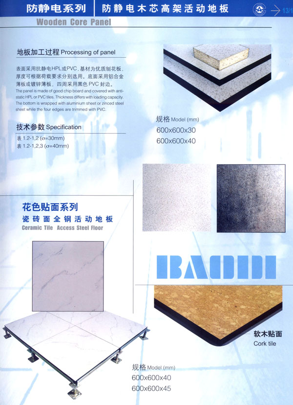 常州市寶進(jìn)防靜電設(shè)備有限公司是各類防靜電產(chǎn)品開發(fā)、設(shè)計(jì)、制造、安裝服務(wù)于一體的企業(yè)。以上海物理學(xué)會(huì)空間靜電專業(yè)委員會(huì)強(qiáng)大的技術(shù)力量為后盾。公司主要致力于各類機(jī)房、電氣室設(shè)計(jì)、安裝;各類防靜電干擾處理及用戶特種需求。公司擁有防空間靜電干擾—聲學(xué)復(fù)合系統(tǒng)、輕質(zhì)全鋼活動(dòng)地板、高環(huán)保型抗靜電貼面等多項(xiàng)發(fā)明專利,是國內(nèi)該行業(yè)中唯一擁有自主知識(shí)產(chǎn)權(quán)的企業(yè)。        公司主要產(chǎn)品“寶迪”牌 防靜電高架地板及板材、OA網(wǎng)絡(luò)地板。產(chǎn)品廣泛用于電子廠房、金融系統(tǒng)、電力、廣電、軍隊(duì)及智能化樓宇。并向多個(gè)國家出口。        針對(duì)發(fā)泡水泥填充的全鋼高架地板自身重、承載差的缺點(diǎn),我們開發(fā)了輕質(zhì)全鋼高架地板。在提前地板承載的同時(shí),大幅減輕了地板的自重。        公司一貫嚴(yán)格執(zhí)行ISO9001-2000質(zhì)量保證體系,為用戶提供高品質(zhì)的產(chǎn)品及完善的售后服務(wù)是公司一貫的宗旨。