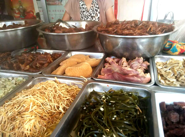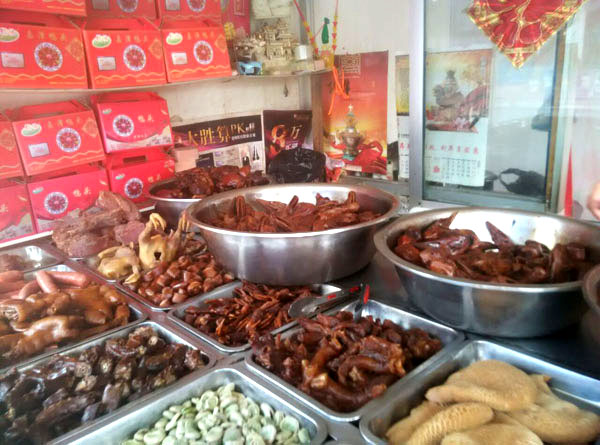 武進(jìn)區(qū)嘉澤老街十字路口,有一家不起眼的鹵菜專賣店,店面雖然不大,但一年365天每天來購買鹵菜的消費(fèi)者卻絡(luò)繹不絕。       這家鹵菜店名叫鎖林鹵菜店,店主名叫萬鎖林。       今年已花甲之年的萬鎖林,出生在武進(jìn)區(qū)的一個(gè)鹵菜世家。解放前,正逢亂世,1927年其父萬友良17歲隨父從蘇北海安至夏溪鎮(zhèn)落戶,全家以經(jīng)營小吃、鹵菜為生。1956年萬友良經(jīng)營的鹵菜小吃店公私合營,起名為東方飯店(后改名為夏溪飯店),萬友良帶領(lǐng)其七個(gè)兒子全部從事餐飲事業(yè)。1972年,排行第六的萬鎖林初中畢業(yè)被分配到嘉澤飯店工作,直至1982年夫妻倆著手創(chuàng)辦鎖林鹵菜館,專業(yè)從事鹵菜的加工和銷售。 鎖林鹵菜采用祖?zhèn)髋浞,制作工藝?jīng)清洗—汆水—再清洗—油汆—加料—燒制—包裝等多道工序。萬鎖林在祖?zhèn)髅胤降幕A(chǔ)上,不斷探索創(chuàng)新,使鹵菜口味更加香醇可口。他還在菜肴中加入茴香、陳皮、桂皮等20多種中草藥,使產(chǎn)品兼具食用保健作用。       由于鎖林鹵菜色、香、味俱佳,而且價(jià)格合理,遠(yuǎn)近數(shù)十里群眾紛紛前來選購目前,該店已形成鴨頭、雞爪、豬頭肉、五香牛肉等四大系列,產(chǎn)品遠(yuǎn)銷北京、上海、浙江、海南及蘇、錫、常各地,深受各地消費(fèi)者青睞。       購買地址: 一、嘉澤鎮(zhèn)菜市場內(nèi)           二、嘉澤鎮(zhèn)老街十字路口       電話:0519-83802086       訂購熱線:18915002160