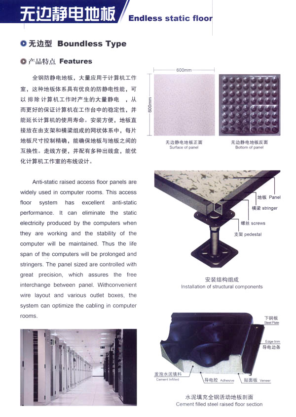 常州星峰活動(dòng)地板有限公司地處常州市橫林鎮(zhèn)前豐工業(yè)園區(qū),東鄰無錫。南有312國(guó)道。京杭大運(yùn)河、北臨滬寧高速公路,交通便捷。本公司資質(zhì)較深,是生產(chǎn)鋼質(zhì)抗靜電地板的專業(yè)廠家。十多年來積累了豐富的經(jīng)驗(yàn)及雄厚的經(jīng)濟(jì)實(shí)力。并以優(yōu)質(zhì)的產(chǎn)品、優(yōu)良的售后服務(wù)贏得了用戶的一致好評(píng)。 本公司生產(chǎn)產(chǎn)品廣泛應(yīng)用于電子計(jì)算機(jī)房、通訊機(jī)房、電視發(fā)射臺(tái)、軍事指揮站、各類實(shí)驗(yàn)室、辦公室及一些管線鋪設(shè)比較集中與要求防靜電場(chǎng)所,市場(chǎng)網(wǎng)絡(luò)縱橫江蘇、山東、福建、甘肅、上海、北京、安徽、浙江、河南等地。