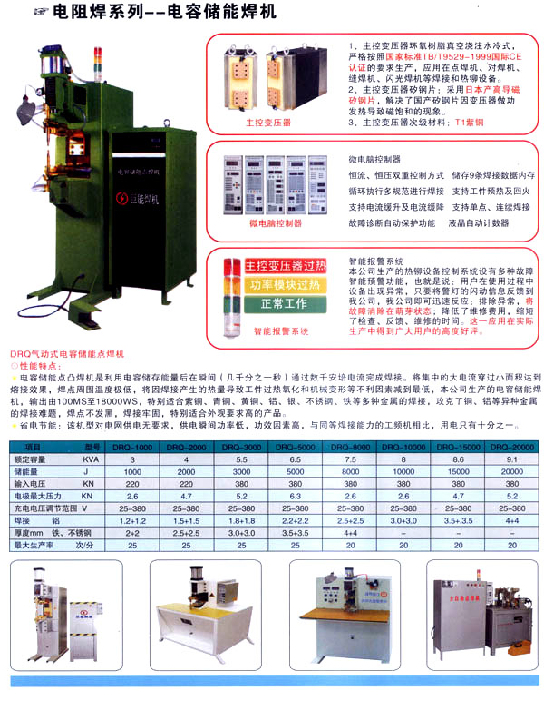 中國★常州市巨能自動化設備制造有限公司是專業(yè)生產(chǎn)各種焊割設備和紡織后整理設備及液壓設備的企業(yè),致力自動化設備的工藝研究和生產(chǎn)制造已二十余年,擁有專業(yè)的科技研發(fā)團隊和成套精密的機械加工設備,從每一個零配件加工到整體設備組裝調(diào)試,都有專業(yè)的技術(shù)人員和質(zhì)量保證體系。 焊割主要產(chǎn)品有:點焊機系列、縫焊機系列、環(huán)縫焊接機床、凸焊機、排焊機、儲能焊機、對焊機、龍門焊機、太陽能焊接設備和機器人焊接系統(tǒng)及外圍設備等;并為用戶設計制造專用焊接設備。 紡織后整理設備主要有:剪毛機、刷花機、滴塑機等;并為用戶設計制造專用紡織后整理設備。 液壓設備主要有:油壓機、平板硫化機等;并為用戶設計制造專用液壓設備。 本公司集咨詢、開發(fā)、研制、生產(chǎn)、銷售、服務于一體。多年來,產(chǎn)品質(zhì)量,售后服務得到廣大用戶好評。 客戶的要求是企業(yè)的奮斗目標,竭誠為用戶做好售前、售后服務是我們的服務宗旨!