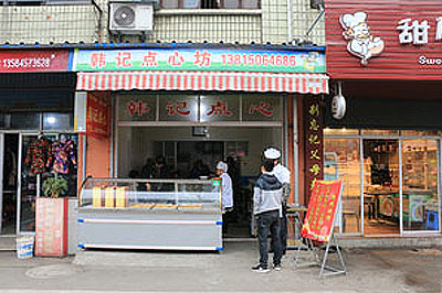 武進區(qū)前黃韓記點心坊從事各式點心制作已有兩代人,特色是雞蛋油條,特色大麻糕,小籠包及各種饅頭,大麻糕又酥又松。 天光大亮,前黃寨橋農(nóng)貿(mào)市場已是人來人往,熱鬧非凡。 靠近市場的一排店面房,聞著隱約飄出的芝麻香,記者找到了坐落其中的韓記點心坊。 油條在鍋內(nèi)滋滋翻滾、各種口味的麻糕在柜臺里依次擺開、包子隱藏在散著熱氣的蒸鍋內(nèi)……沉寂一個晚上的胃,頓時有些不安于寂寞。 韓記大油條: 飯店、麻辣燙店點名要它 60斤面粉,大約400根油條,這是韓記點心坊每天要賣掉的量。 將預先調(diào)制好的面團鋪開,切成均勻的長條,每兩條上下疊好,用小竹板中間一壓、拎起兩頭一拉,放進油鍋,滿鍋的油就開始沸騰起來。 老板韓效慶做起油條來一氣呵成,他的油條會用到低筋、中筋、高筋三種面粉,根據(jù)季節(jié)不同,配比也不同,再加雞蛋、泡打粉發(fā)面,炸好后吃起來特別香脆。 “附近市場飯店、麻辣燙店用的油條都是我這里的,有些食客點名要吃我們店里的油條。”韓效慶自豪地介紹說,他做點心的手藝是從父親那里學來的。在父親手下學了7年后,他先后前往常州迎桂饅頭店、興隆園美食城、常州麻糕店等地打工,最終形成了自己的點心配方。 兩年前,韓效慶回到家鄉(xiāng),在農(nóng)貿(mào)市場租店面開了點心坊,這里也成了市場上最熱鬧的一家店鋪。 韓記大麻糕: 冷著吃也很酥脆 向外地人介紹常州地道美食,大麻糕是絕對繞不過的。一家好的麻糕店,一定要具備以下特點:清晨排長隊;麻糕被帶往外地甚至海外;死忠粉甚多。而這些特點,韓記大麻糕都具備。 要問韓記大麻糕與其他麻糕有什么不同,韓效慶還真說出了好幾個區(qū)別。例如,很多傳統(tǒng)麻糕使用烤桶,烤桶內(nèi)用的是煤,而韓記用的是大烤箱。再比如,一些外地朋友吃到的麻糕“干乎乎、木噱噱”,“這是因為他們買到的麻糕采取了普通的發(fā)面方式,再放進爐子或烤箱一烤,水分蒸發(fā)了,肯定硬!表n效慶經(jīng)過多次嘗試,用麥芽糖發(fā)面,麥芽糖具有保濕性,使水分不易蒸發(fā),對麻糕的保濕與品質(zhì)的維持有較好的效果,這樣做出來的麻糕即便冷了也依舊酥脆。甜味的韓記大麻糕也不使用白糖,而是采用果糖,麻糕冷后也不會結(jié)塊,保持了更好的口感。 在韓記,大麻糕做好后,表面的芝麻也不是撒上去的,而是印上去的。芝麻經(jīng)烘烤之后顆粒飽滿,呈象牙色,使大麻糕的香、脆得到充分體現(xiàn)。 韓記大肉包:糅合豆瓣醬的創(chuàng)新美味 下粉、摻水、攪拌、揉搓……棉絮狀的面粉像被施了魔法,不一會兒就變成了一個白凈光滑的面團。 韓效慶將面團放置在一旁,待它慢慢餳著,轉(zhuǎn)手拿出已經(jīng)拌好的餡料,“你能聞出什么味道嗎?”在確定記者猜不出后,他開始娓娓道來——豬肉都是后腿肉,餡料里不放鹽、味精,全靠豆瓣醬和糟方提味。 待面團和餡料都準備就位,只見韓效慶一手拿著切好的面團,一手握著搟面棍,飛速地邊搟邊旋轉(zhuǎn),一張薄厚適中的面皮眨眼就制作完成了。他將搟好的面皮放于左手手心,舀起一勺肉餡置于面皮中央,熟練地將面皮捏出十多道褶皺,輕輕一扭,一個肉包躍然眼前。 待包子蒸好,食客們紛紛起身,等著帶走屬于自己的那一份美味。記者也忍不住拿起一個,咬上一口,咸鮮的美味、撲鼻的豆瓣香,那種特別的味道只有品嘗過的人才能體會。 食客點評:食客孫桂洪:我是寨橋人,住在湖塘好幾年了,可每隔一段時間,我就特別想那酥脆的油條和熱乎的肉包。驅(qū)車前往韓記點心坊,點上一碗豆腐湯,要兩樣點心,趁熱一股腦兒全都塞進胃里,每次吃完都特別滿足。