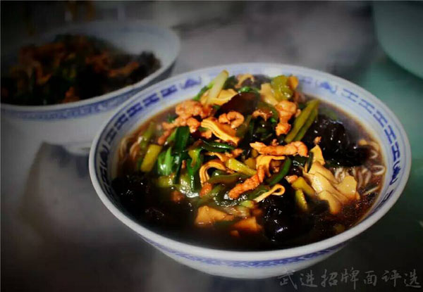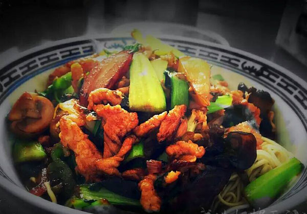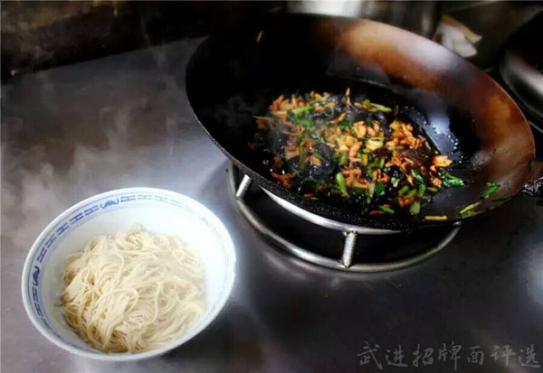 武進區(qū)青城面館經(jīng)營面積280平方米左右,主要特色是現(xiàn)炒肉絲,素菜蓋澆面,面館創(chuàng)始人今年63歲的王蘭珍,她對美食有著高于常人的悟性。她開過饅頭店,開過小飯館,承包過食堂,燒菜、取料樣樣在行,吃過的人常常贊不絕口。 20世紀初,在跟德興面館的老師傅學了做面手藝后,王蘭珍萌生了開一家面館的想法,除了可以養(yǎng)家糊口,最重要的是想讓更多人嘗嘗自己的手藝。于是,她在自己的住處擺起了幾張桌椅,面館就算正式營業(yè)了。因為家住青城橋,王蘭珍干脆取名“青城面館”。 “從早上5點多開始營業(yè),到下午1點多打烊,一天至少要賣掉300多碗面,用掉近160斤面粉!睘楹吻喑敲骛^的面條如此受歡迎,兒媳婦陸偉紅說秘訣在于湯頭和澆頭。湯頭分白湯和紅湯,白湯是由10斤豬骨頭熬制而成,湯色清澈而味道濃郁;紅湯以骨頭湯作底湯,加入茴香、甘草、草果等20多種中草藥,以及糖、醬油等調(diào)味品,鮮而不腥,散發(fā)出陣陣香味。 和一般面館事先燒制好澆頭,放在盆里供客人選擇不同,青城面館的澆頭都是一份份現(xiàn)炒的,特別講究食材的新鮮。就拿暢銷的肉絲蔬菜紅湯面來說,要先起猛火,把肉絲、木耳、蘑菇、青菜等食材放一起煸炒至香,然后澆在撈起的面條上。一碗面出來,現(xiàn)炒的澆頭與面條融合,味道香郁至極。 遙觀人的早晨,醒得有些早。對很多遙觀人來說,美好的一天是從青城面館開始的。那一碗碗現(xiàn)炒的蓋澆面,筋道爽滑、醬香味濃,溫存著他們的胃與記憶,帶來刻進骨子里的家鄉(xiāng)味道。