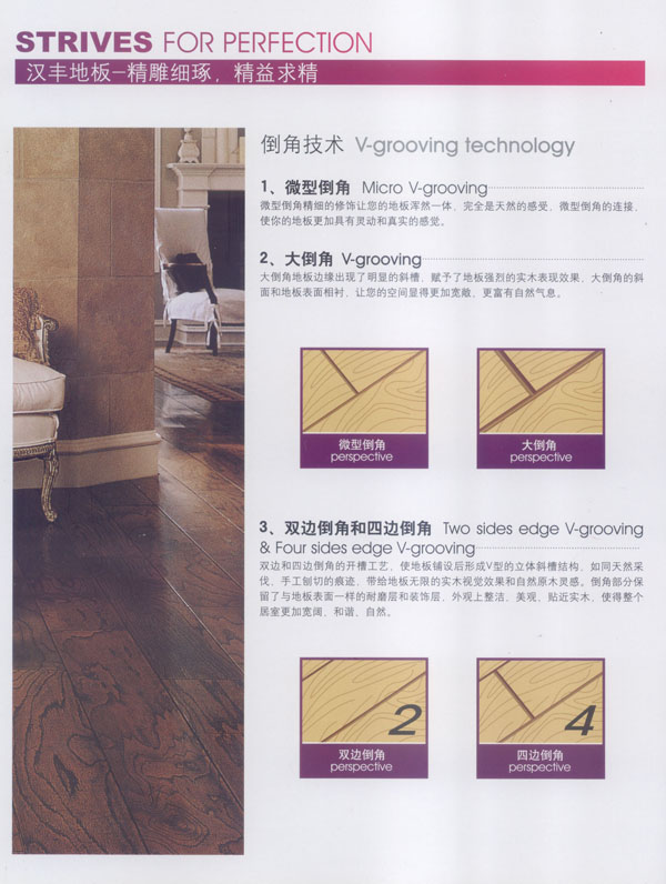 常州漢豐裝飾材料有限公司是一家涉及強(qiáng)化地板制造、屏風(fēng)鋁材生產(chǎn)、進(jìn)出口貿(mào)易的大型公司。2001年公司投入重資.全面引進(jìn)世界頂級一體化自動流水生產(chǎn)線和具有國際先進(jìn)水準(zhǔn)的德國權(quán)威木地板生產(chǎn)技術(shù),興建強(qiáng)化地板生產(chǎn)基地。多年以來.一直不斷加強(qiáng)生產(chǎn)設(shè)備、廠房基礎(chǔ)投入,目前公司年生產(chǎn)強(qiáng)化地板能力已經(jīng)達(dá)到了500萬平方米,步入國內(nèi)一流行列,具備了雄厚的國際競爭力。        漢豐地板以奉獻(xiàn)生活中最完美的地板為發(fā)展目標(biāo),時尚流行的設(shè)計風(fēng)格和多樣化的產(chǎn)品類型,贏得了市場的廣泛贊譽(yù)和肯定。產(chǎn)品嚴(yán)格按照歐洲標(biāo)準(zhǔn)檢測強(qiáng)化木地板的各項性能指標(biāo).達(dá)到百分百的國際技術(shù)標(biāo)準(zhǔn),確保了每一塊地板都有著上乘品質(zhì),是綠色環(huán)保的好地板。并先后通過了Isc)9001國際質(zhì)量管理體系認(rèn)證,IS014001國際環(huán)境管理體系認(rèn)證.中國環(huán)境標(biāo)志產(chǎn)品認(rèn)證,深得用戶的一致好評,是寫字樓、商場、大型超市、學(xué)校、建筑樓宇、娛樂場所、家用私宅等鋪裝的首選地板。