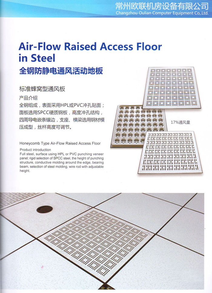 “歐聯(lián)”系列全鋼地板,符合國(guó)家安全要求,種類完備多樣,其中防靜電陶瓷地板、硫酸鈣地板等除具有普通瓷質(zhì)的裝飾和實(shí)用性外,其耐磨、防水、防火功能優(yōu)于其它同類產(chǎn)品,防靜電系列地板,能切合不同客戶的要求,其靈活的配置,深受客戶歡迎,不同材質(zhì)的地板結(jié)構(gòu)使設(shè)計(jì)師的設(shè)計(jì)空間比傳統(tǒng)的更加廣闊自由和善變。