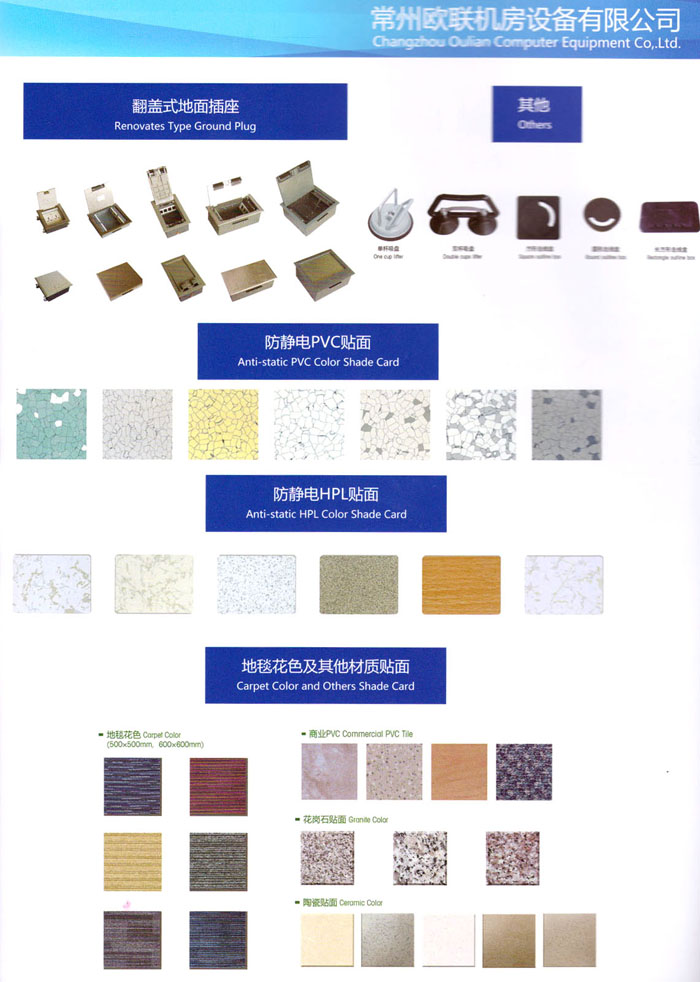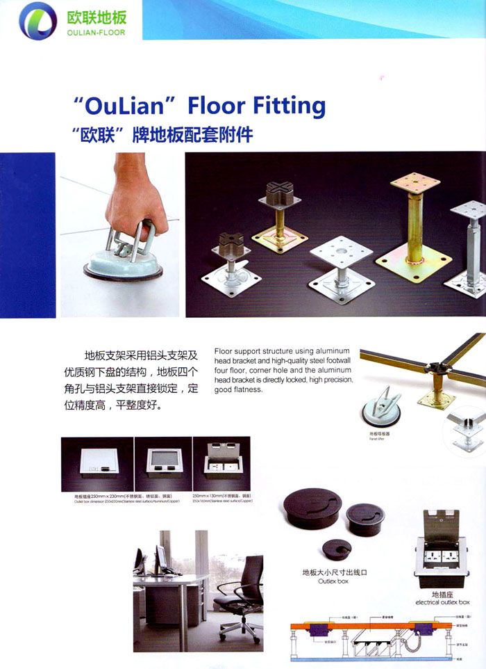防靜電高架活動地板、全鋼地板、陶瓷地板是計算機行業(yè)發(fā)展起來的新型鋪地材料,隔離了潮氣、靜電灰塵,最重要的是解決了綜合布線問題,無需預埋管線,可隨時拆卸、搬移,保證了資訊設備完整的優(yōu)點,適應了智能化樓宇中信息自動化技術(shù)對所處環(huán)境的特定要求,避免了廣大客戶的雙重投資,使現(xiàn)代化辦公程度更加高效,辦公場所更加舒適。 “歐聯(lián)”系列全鋼地板,符合國家安全要求,種類完備多樣,其中防靜電陶瓷地板、硫酸鈣地板等除具有普通瓷質(zhì)的裝飾和實用性外,其耐磨、防水、防火功能優(yōu)于其它同類產(chǎn)品,防靜電系列地板,能切合不同客戶的要求,其靈活的配置,深受客戶歡迎,不同材質(zhì)的地板結(jié)構(gòu)使設計師的設計空間比傳統(tǒng)的更加廣闊自由和善變。 公司大力發(fā)展國內(nèi)外銷售業(yè)務,多次中標國內(nèi)重點工程 ,例:哈爾濱醫(yī)科大學、山東大學、上海普通機場等。 公司將一如既往開發(fā)和制造一流的產(chǎn)品,愿與廣大有識之士合作發(fā)展,共創(chuàng)美好未來。